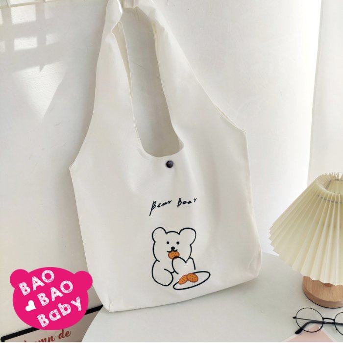 優寶購物《ubao.Tw》特貨品商城,黑貓宅配,取貨付款,【寶貝日雜包】小熊愛吃餅乾帆布袋 單肩包 帆布包 手提包 購物包 上課包 肩背包 | Yahoo拍賣