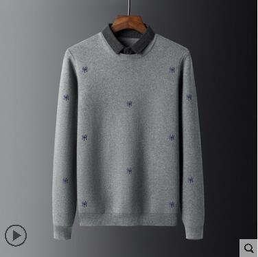 優寶購物《ubao.Tw》特貨品商城,黑貓宅配,取貨付款,潮流假兩件男士毛衣襯衫領針織打底衫男裝灰色 | Yahoo拍賣