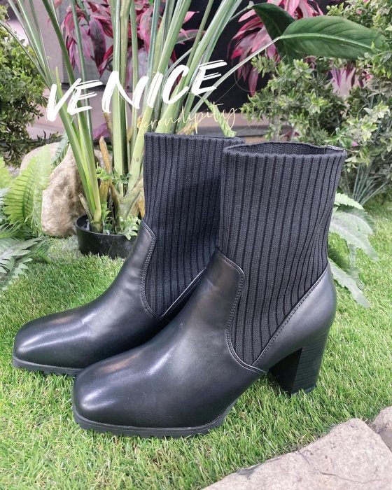 優寶購物《ubao.Tw》特貨品商城,黑貓宅配,取貨付款,日本專櫃品牌MERCURYDUO黑色拼接襪套方頭粗跟短靴Venice維娜絲日本代購 | Yahoo拍賣