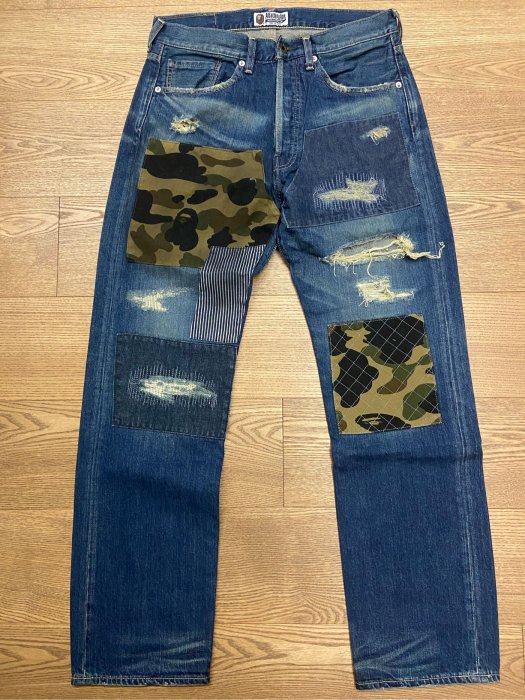 優寶購物《ubao.Tw》特貨品商城,黑貓宅配,取貨付款,BAPE A BATHING APE 經典破壞牛仔褲 S號 M號 | Yahoo拍賣