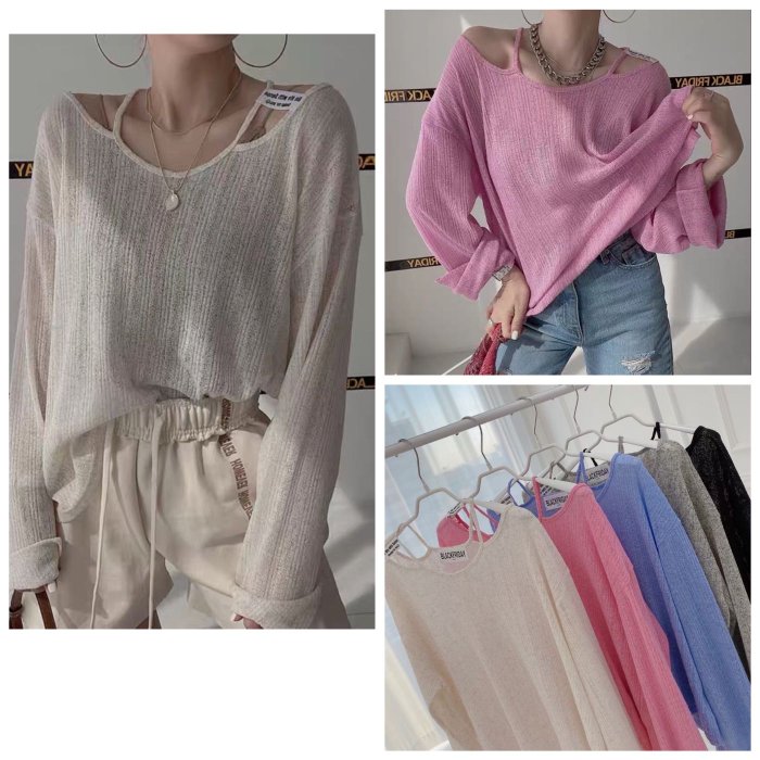 優寶購物《ubao.Tw》特貨品商城,黑貓宅配,取貨付款,韓國🍃小心機掛脖吊帶露肩長袖上衣 | Yahoo拍賣