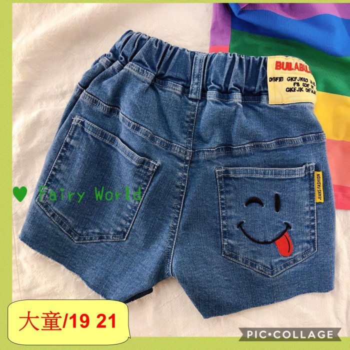 優寶購物《ubao.Tw》特貨品商城,黑貓宅配,取貨付款,台灣現貨/大童【221096】Fairy World 春夏28042 笑臉牛仔短褲 19 21號 | Yahoo拍賣