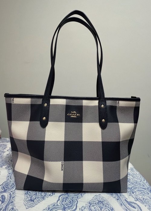 優寶購物《ubao.Tw》特貨品商城,黑貓宅配,取貨付款,Coach 藍白格紋 拖特包 購物袋 | Yahoo拍賣
