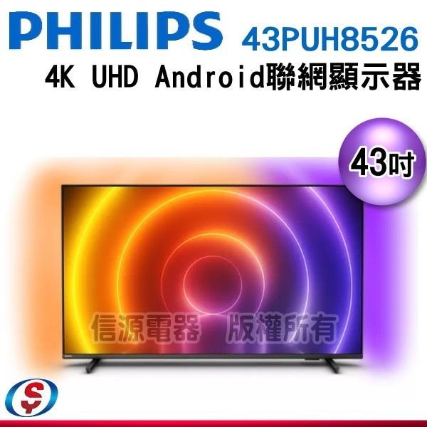 優寶購物《ubao.Tw》特貨品商城,黑貓宅配,取貨付款,(可議價)【信源電器】43吋 【PHILIPS飛利浦4K UHD LED Android 顯示器】43PUH8526 | Yahoo拍賣