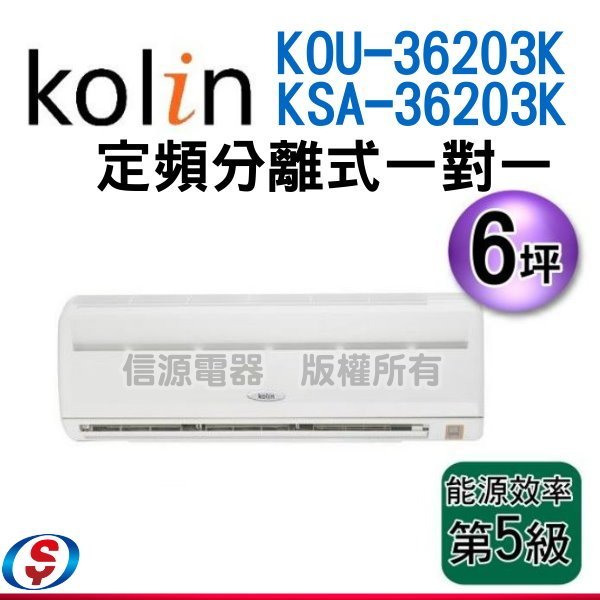 優寶購物《ubao.Tw》特貨品商城,黑貓宅配,取貨付款,可議價【信源】6坪~【Kolin 歌林 冷專定頻一對一分離式冷氣】KOU-36203K+KSA-362S03K | Yahoo拍賣