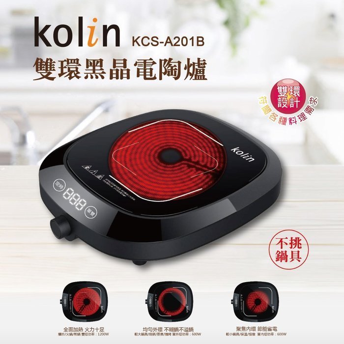 優寶購物《ubao.Tw》特貨品商城,黑貓宅配,取貨付款,泰昀嚴選 KOLIN 歌林雙環式定溫不挑鍋黑晶電陶爐 KCS-A201B 線上刷卡免手續 全省宅配到府 A | Yahoo拍賣