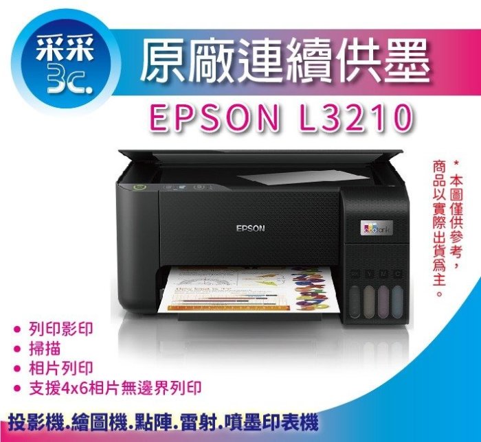 優寶購物《ubao.Tw》特貨品商城,黑貓宅配,取貨付款,【采采3c+含稅+加購墨水二組+登錄送500+3年保固】EPSON L3210 高速三合一 原廠連續供墨印表機 | Yahoo拍賣