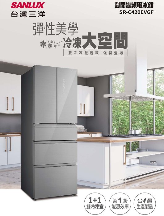 優寶購物《ubao.Tw》特貨品商城,黑貓宅配,取貨付款,鑫冠鑫↘SANLUX台灣三洋 SR-C420EVGF 420公升 直流變頻電冰箱 | Yahoo拍賣
