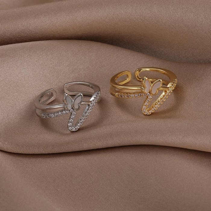 優寶購物《ubao.Tw》特貨品商城,黑貓宅配,取貨付款,{菲兒韓國飾品} B9723 韓國直送(正韓)-法式氣質水鑽貝殼蝴蝶雙層開口戒指(二色) | Yahoo拍賣