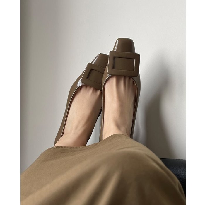 優寶購物《ubao.Tw》特貨品商城,黑貓宅配,取貨付款,IM 大牌氣質法式方扣淺口真皮單鞋/羊皮牛皮訂製方扣方頭粗跟鞋 粉杏/米白/咖褐35-40 | Yahoo拍賣