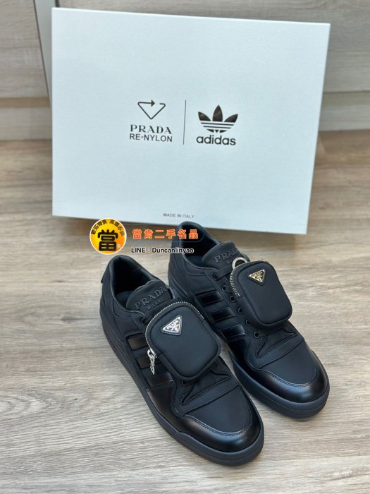 優寶購物《ubao.Tw》特貨品商城,黑貓宅配,取貨付款,《當肯二手名品》PRADA ADIDAS 聯名 黑色 皮革 尼龍 零錢包 休閒鞋 ㊣ | Yahoo拍賣