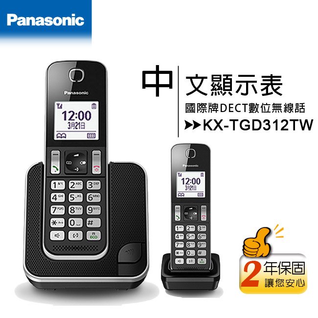 優寶購物《ubao.Tw》特貨品商城,黑貓宅配,取貨付款,【公司貨含稅】國際牌Panasonic KX-TGD312TW / KX-TGD312中文雙子機無線電話 | Yahoo拍賣