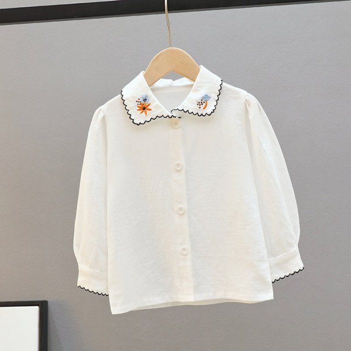 優寶購物《ubao.Tw》特貨品商城,黑貓宅配,取貨付款,兒童襯衫女童春秋季純棉襯衣兒童潮款白色襯衫小女孩洋氣繡花領上衣襯衫T恤超便宜休閒風男女童服飾 | Yahoo拍賣