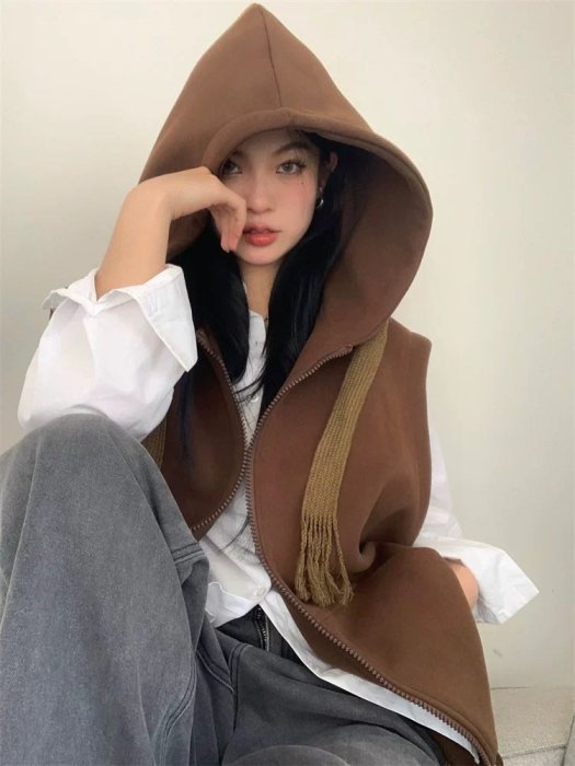優寶購物《ubao.Tw》特貨品商城,黑貓宅配,取貨付款,焦糖色坎肩寬鬆小慵懶連帽背心 現貨 | Yahoo拍賣