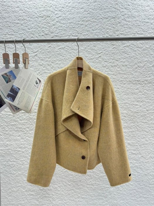 優寶購物《ubao.Tw》特貨品商城,黑貓宅配,取貨付款,奶黃 ®️ 雙面羊毛短版大衣 100%羊毛外套 | Yahoo拍賣