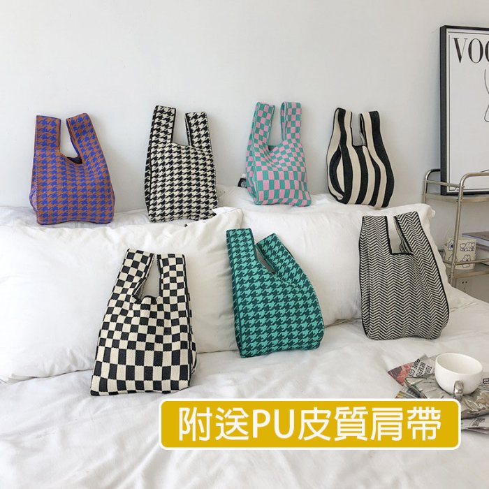 優寶購物《ubao.Tw》特貨品商城,黑貓宅配,取貨付款,送肩帶 熱賣!日韓新款條紋針織包女背心形狀彩色系時尚手提包 棋盤格針織提包 買菜包購物包針織包毛線包 | Yahoo拍賣