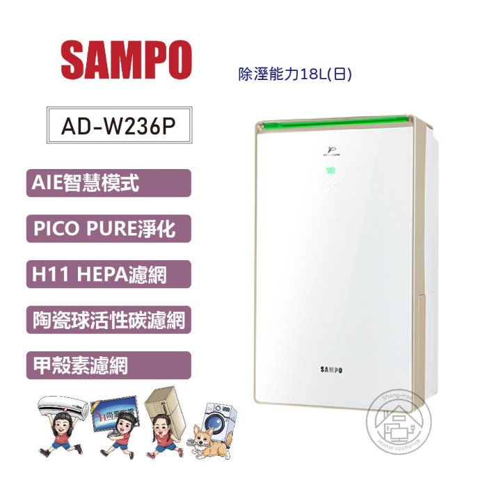 優寶購物《ubao.Tw》特貨品商城,黑貓宅配,取貨付款,💜尚豪家電-台南💜SAMPO聲寶 18L PICO PURE+HEPA多重清淨除濕機AD-W236P✨私優惠價 | Yahoo拍賣