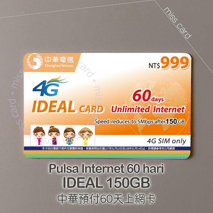 優寶購物《ubao.Tw》特貨品商城,黑貓宅配,取貨付款,【中華60天150GB 上網吃到飽】如意卡 預付卡專用上網補充卡/儲值卡IDEAL999⚡MissCall儲值卡專賣 | Yahoo拍賣