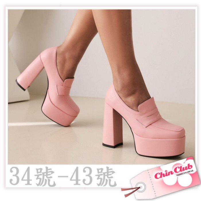 優寶購物《ubao.Tw》特貨品商城,黑貓宅配,取貨付款,34-43大尺碼小尺碼女鞋 踝靴 厚底防水台高跟鞋 復古風深口素面粗跟高跟包鞋☆↖ChinClub↗☆[5426]粉色 | Yahoo拍賣