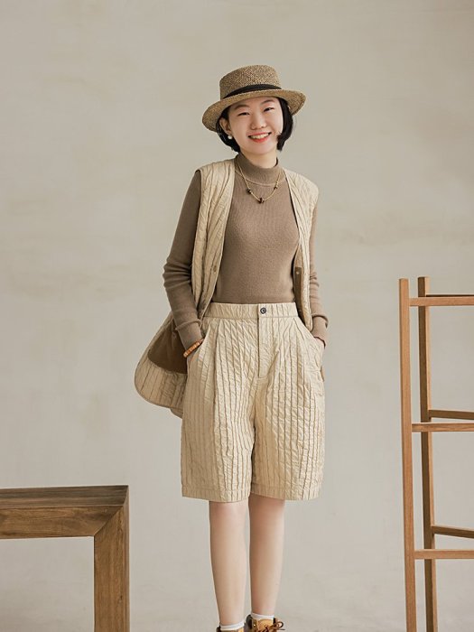 優寶購物《ubao.Tw》特貨品商城,黑貓宅配,取貨付款,麻霖2023早春新品棉混紡皺布豎條紋肌理感半松緊休閑寬松百搭短褲~特價~默認最小規格價格 | Yahoo拍賣
