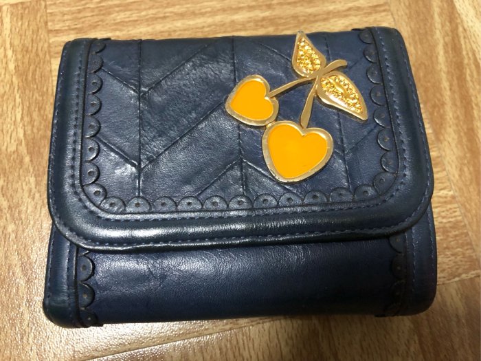 優寶購物《ubao.Tw》特貨品商城,黑貓宅配,取貨付款,日本專櫃ANNA SUI 高雅簡約櫻桃綴飾柔軟輕巧皮革扣式零錢短皮 皮夾 | Yahoo拍賣