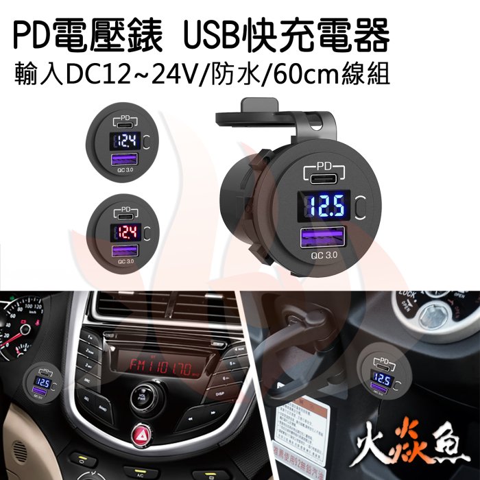 優寶購物《ubao.Tw》特貨品商城,黑貓宅配,取貨付款,火焱魚 汽車 機車 車用 PD 電壓顯示錶 防水 USB 快充電座 3.0 藍 紅 白 贈 保險絲線組 60cm 車充 | Yahoo拍賣