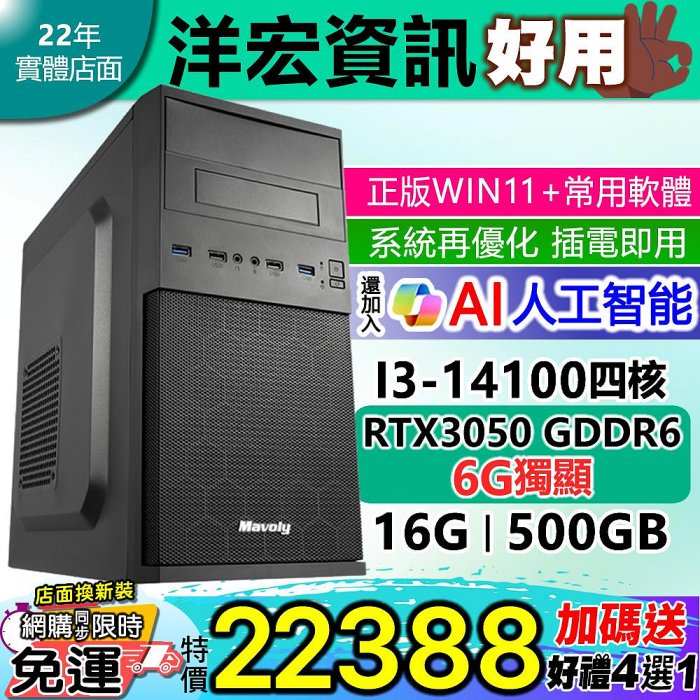 優寶購物《ubao.Tw》特貨品商城,黑貓宅配,取貨付款,【22388元】3D繪圖電競遊戲新I3電腦RTX 3050 6G獨立顯卡主機含WIN11系統預裝常用軟體插電即用可暗黑4台南洋宏資訊 | Yahoo拍賣