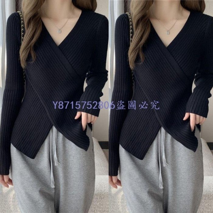 優寶購物《ubao.Tw》特貨品商城,黑貓宅配,取貨付款,現貨 連帽衛衣 秋冬 休閒褲 交叉針織打底衫女秋冬遮肚緊身顯瘦v領上衣不規則毛衣 A | Yahoo拍賣