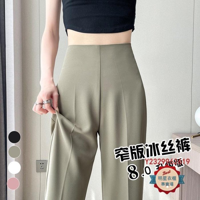 優寶購物《ubao.Tw》特貨品商城,黑貓宅配,取貨付款,薄款冰絲西裝闊腿褲女夏季2025新款窄版直筒高腰顯瘦垂感拖地長褲 | Yahoo拍賣
