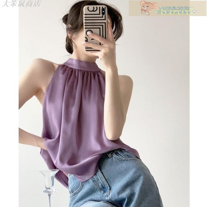 優寶購物《ubao.Tw》特貨品商城,黑貓宅配,取貨付款,削肩上衣印思 削肩無袖掛脖背心小吊帶女2022夏季外穿內搭設計感小眾上衣-大笨鼠 | Yahoo拍賣