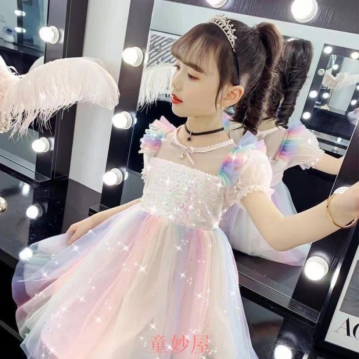 優寶購物《ubao.Tw》特貨品商城,黑貓宅配,取貨付款,爆款-女童愛莎系列女童 洋裝 夏季最 2023新款網紗裙女孩洋氣時尚七彩公主裙 蓬蓬裙 | Yahoo拍賣