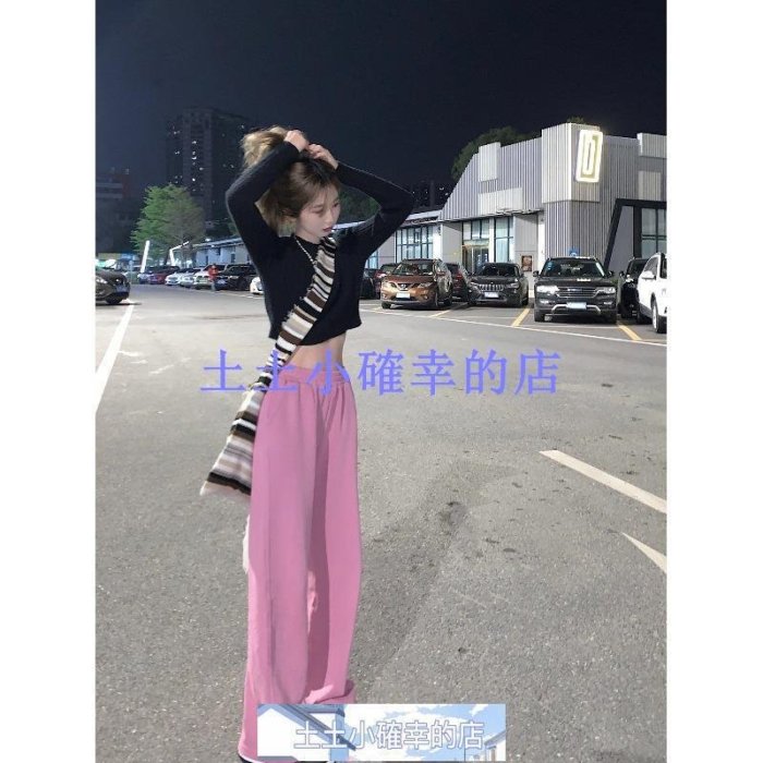 優寶購物《ubao.Tw》特貨品商城,黑貓宅配,取貨付款,特賣-闊腿褲時尚簡約粉色松緊腰休閑褲女春季2023新款運動風寬松顯瘦闊腿長褲 | Yahoo拍賣