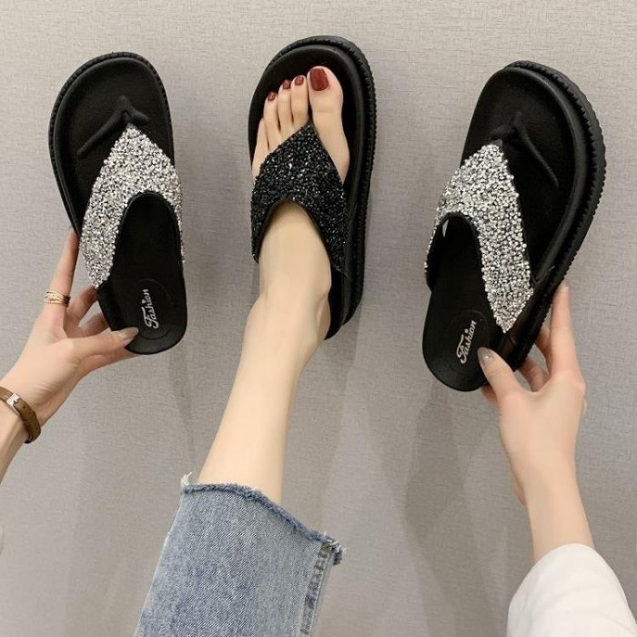 優寶購物《ubao.Tw》特貨品商城,黑貓宅配,取貨付款,水鑚人字拖女夏時尚外穿厚底夾腳網紅拖鞋2020新款沙灘坡跟涼拖鞋 全館免運超夯 正品 活動 優惠 | Yahoo拍賣