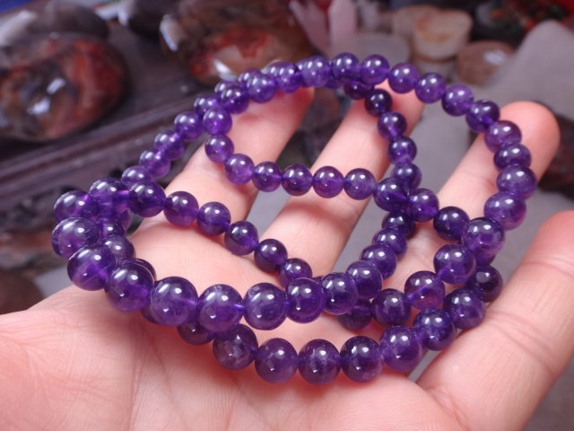 優寶購物《ubao.Tw》特貨品商城,黑貓宅配,取貨付款,《藍晶寶石玉石特賣批發區》→〈精緻項鍊系列〉→特級天然烏拉圭紫水晶7mm3圈圓珠珠手項鍊(38公克→Z48 | Yahoo拍賣