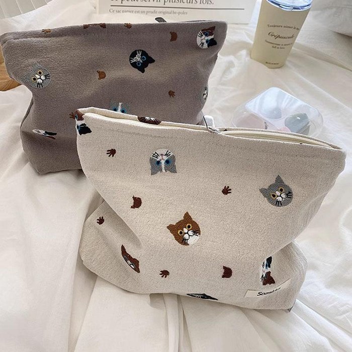 優寶購物《ubao.Tw》特貨品商城,黑貓宅配,取貨付款,【極簡時尚】 日式刺繡貓咪棉麻化妝包零錢收納包手拿包 | Yahoo拍賣