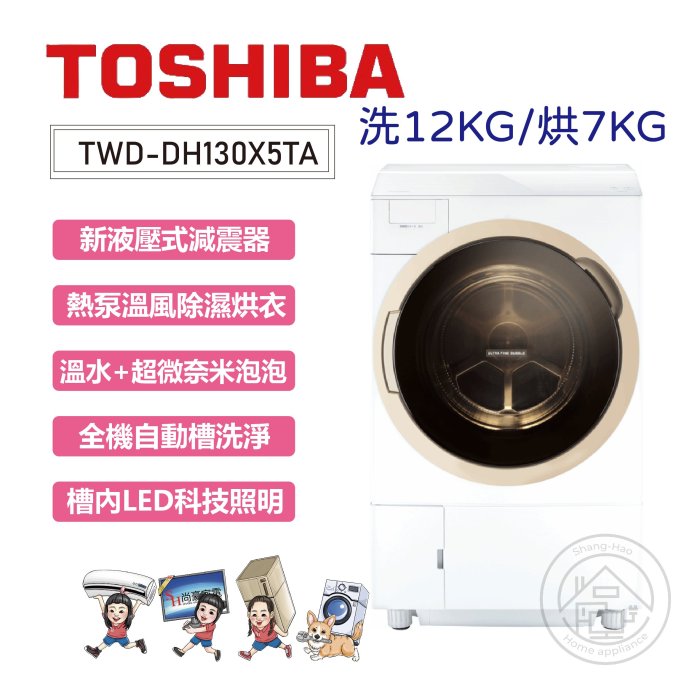 優寶購物《ubao.Tw》特貨品商城,黑貓宅配,取貨付款,💗尚豪家電-台南💗東芝 12KG 旗艦熱泵奈米溫水洗脫烘滾筒洗衣機TWD-DH130X5TA💟免運送基安 | Yahoo拍賣