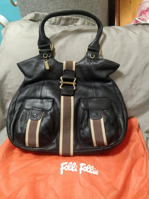 優寶購物《ubao.Tw》特貨品商城,黑貓宅配,取貨付款,時尚二手屋FOLLI FOLLIE黑色皮革肩背包專櫃品牌 | Yahoo拍賣