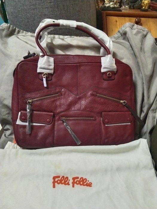 優寶購物《ubao.Tw》特貨品商城,黑貓宅配,取貨付款,時尚二手屋FOLLI FOLLIE棗紅色肩背包專櫃品牌 | Yahoo拍賣
