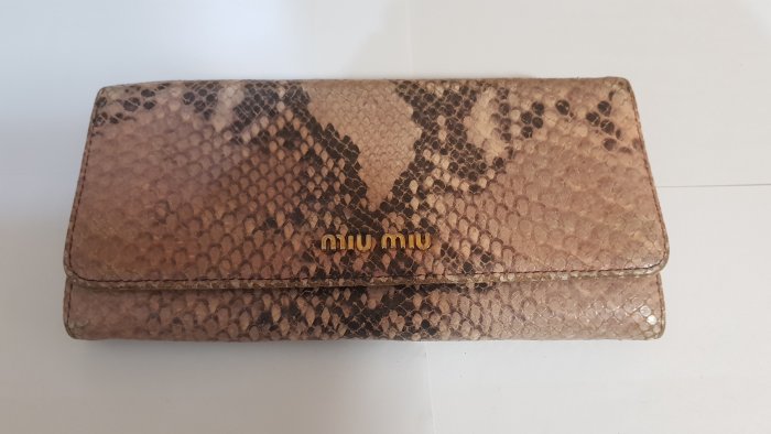 優寶購物《ubao.Tw》特貨品商城,黑貓宅配,取貨付款,MIU MIU 仿蛇皮紋 16卡釦式女用長夾(真品) | Yahoo拍賣