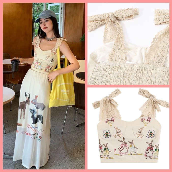 優寶購物《ubao.Tw》特貨品商城,黑貓宅配,取貨付款,童趣兔子 質感刺繡 褶皺綁帶背心 | Yahoo拍賣