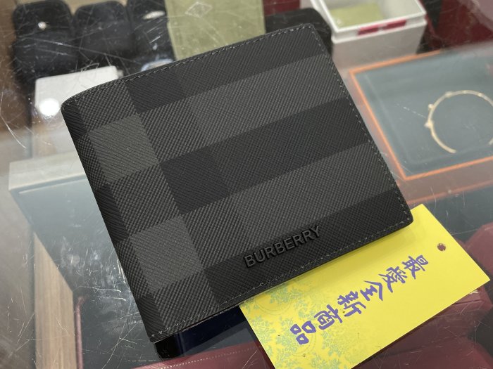 優寶購物《ubao.Tw》特貨品商城,黑貓宅配,取貨付款,☆最愛二手精品☆ BURBERRY 全新黑灰色格紋黑字 LOGO 8卡對開短夾皮夾男夾 8070273 XG5297 | Yahoo拍賣