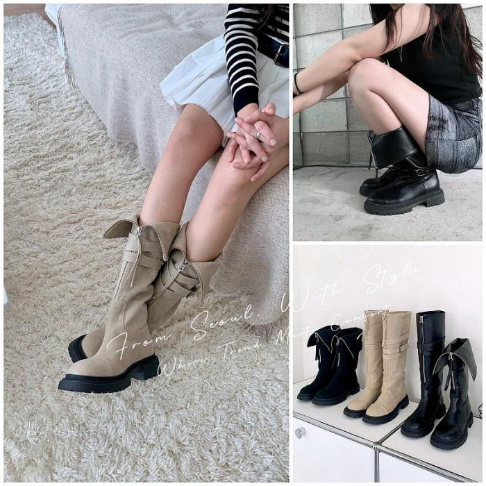 優寶購物《ubao.Tw》特貨品商城,黑貓宅配,取貨付款,韓國空運🇰🇷【銷售冠軍王】🔥 拉鍊折疊綁帶騎士靴 👢 四季百搭新款 #2053 | Yahoo拍賣