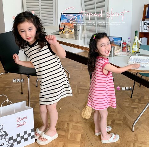 優寶購物《ubao.Tw》特貨品商城,黑貓宅配,取貨付款,韓國女童2023新款女寶寶夏裝洋氣連衣裙兒童裙子韓版條紋背心裙 | Yahoo拍賣