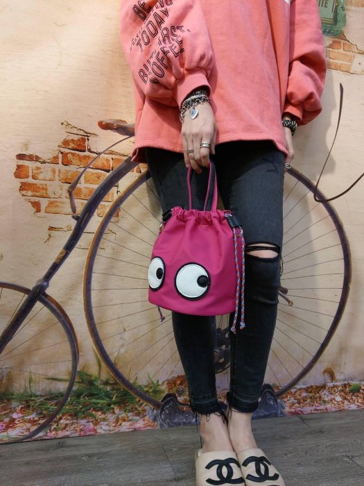 優寶購物《ubao.Tw》特貨品商城,黑貓宅配,取貨付款,韓國 防水尼龍布配真皮 可愛大眼睛束口水桶包/手提/肩背/斜背/側背 | Yahoo拍賣