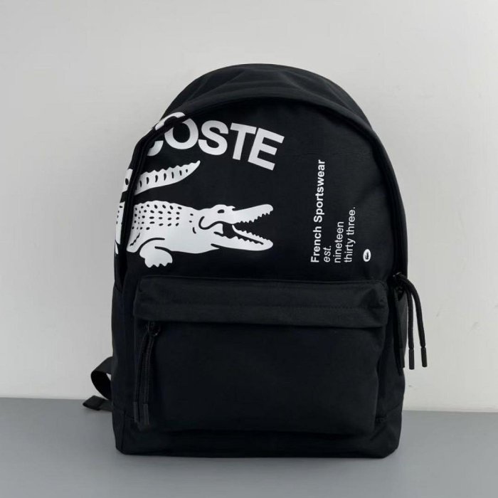 優寶購物《ubao.Tw》特貨品商城,黑貓宅配,取貨付款,美國 Lacoste 黑色 造型拉鍊款輕量大款雙肩後背包 旅行 出遊 防水 限量優惠 | Yahoo拍賣
