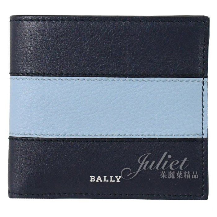 優寶購物《ubao.Tw》特貨品商城,黑貓宅配,取貨付款,【茱麗葉精品】【全新精品】BALLY 6303057 BRASAI 撞色條紋小牛皮8卡短夾.藍 現貨 | Yahoo拍賣