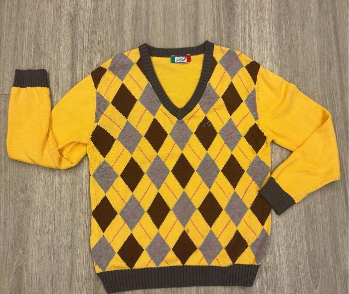 優寶購物《ubao.Tw》特貨品商城,黑貓宅配,取貨付款,百貨專櫃鱷魚副牌CROCODILE菱格紋黃色針織毛衣上衣-標18號 -尺寸偏170 | Yahoo拍賣