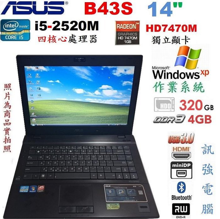 優寶購物《ubao.Tw》特貨品商城,黑貓宅配,取貨付款,Win XP作業系統筆電、型號 : ASUS B43S、Core i5-2520 四核CPU、4GB記憶體、320G硬碟、DVD燒錄機 | Yahoo拍賣