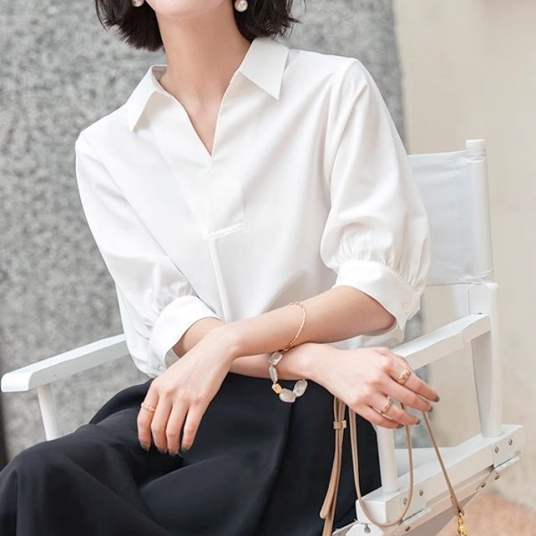 優寶購物《ubao.Tw》特貨品商城,黑貓宅配,取貨付款,小V私家~ 日單 MK 經典不過時必留款 光滑莫代爾棉 女の寬鬆燈籠袖純色襯衫上衣 SLY (P1538) | Yahoo拍賣