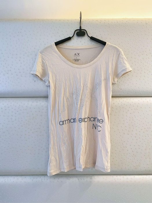 優寶購物《ubao.Tw》特貨品商城,黑貓宅配,取貨付款,田心齊⭐️ARMANI EXCHANGE杏色亮鑽logo短袖T恤/二手保存良好a004 | Yahoo拍賣